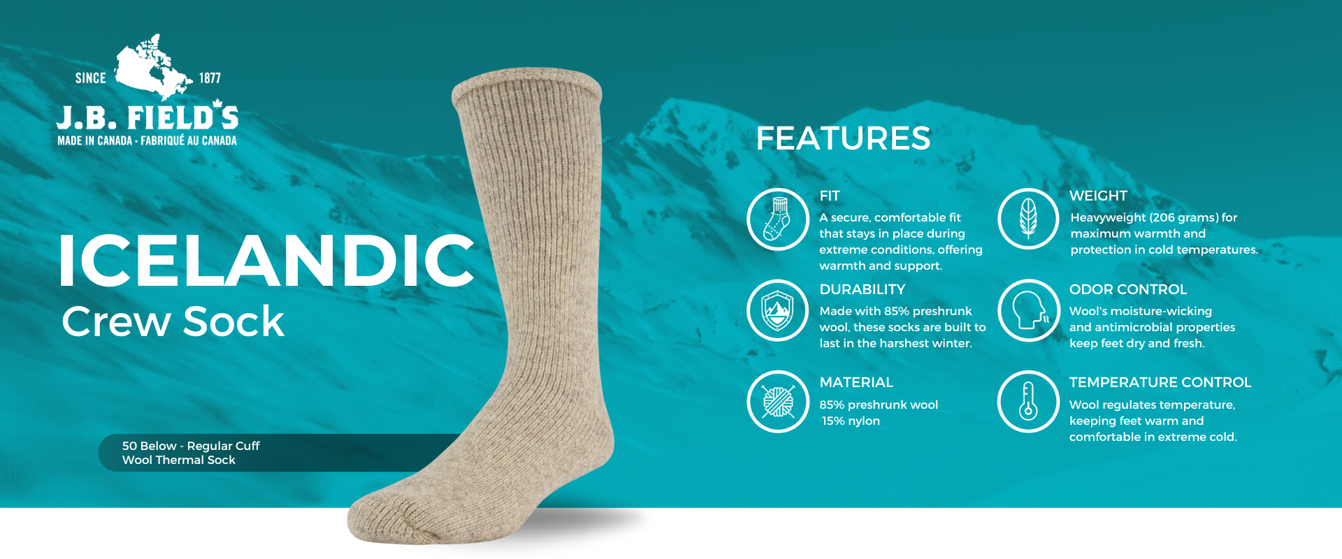 Founded in 1877 in Tavistock Ontario, J.B. Field's was origionally set up to manufacture socks for the logging industry. Today it still remains a family owned business focused on making the world's best socks.