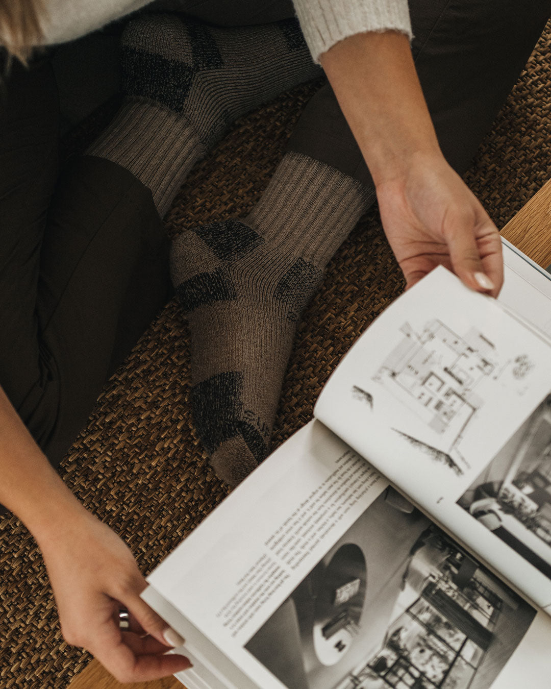 Merino wool is a type of wool that comes from a merino sheep. It is the finest wool on the market, making the fabric soft and itch-free. It is also breathable and temperature-regulating, so your feet are not too hot or cold. Merino is one of the best fibres for wicking moisture as it can absorb up to 30% of its weight in moisture and moves it from your skin to the outside of the fabric, where it evaporates. Because it stays dry, odour-causing bacteria cannot grow, making it a naturally antimicrobial fibre.