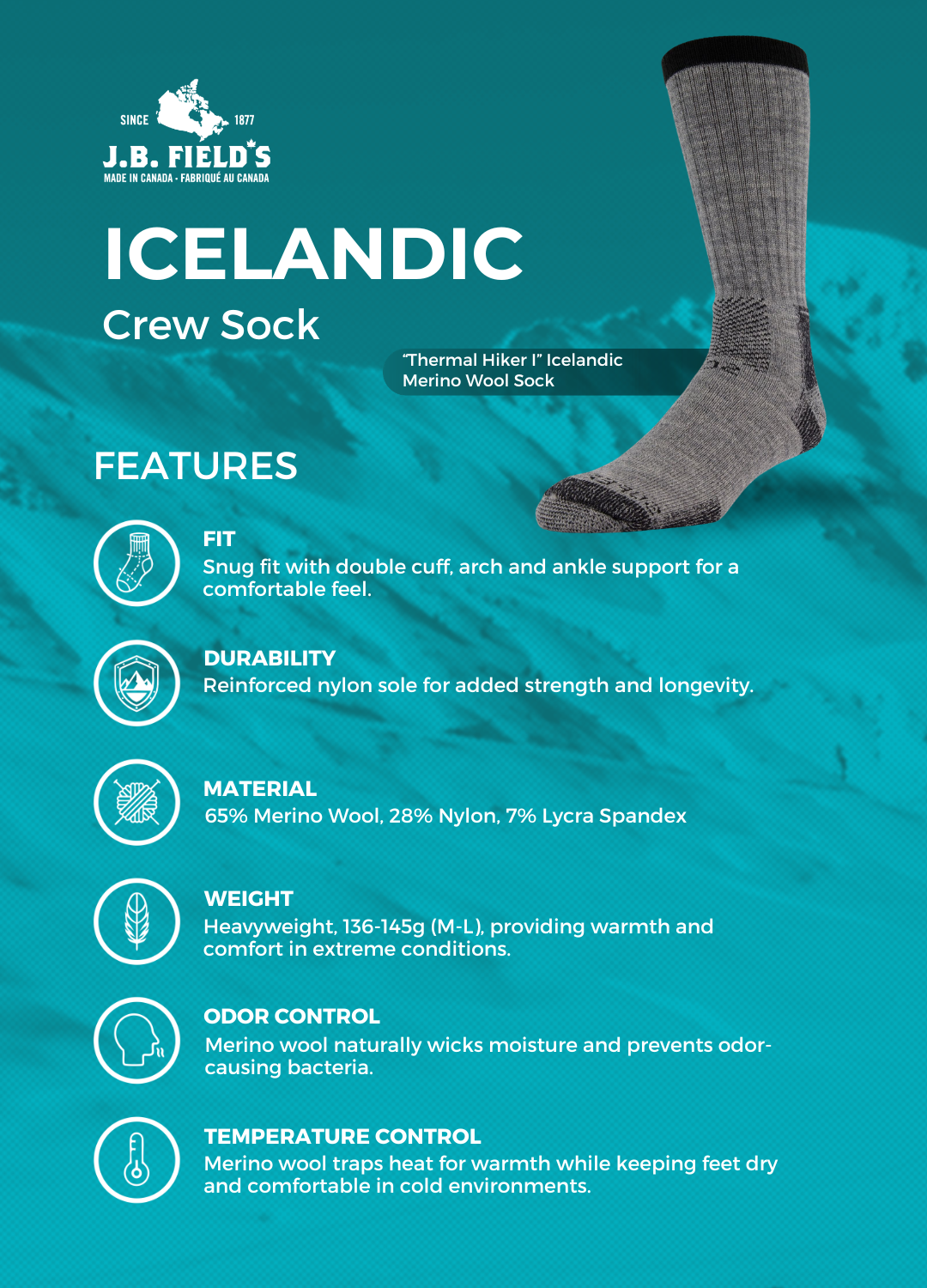 The Thermal Hiker I is one of the warmest hiking socks on the market due to its high merino wool content and thick cushioned sole for added comfort in boots. If you prefer a more snug fit on your feet, these thermal socks are perfect for you. In addition, these socks are designed to withstand extreme conditions, making a difference where it matters most!