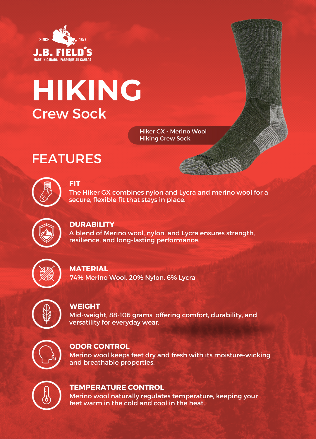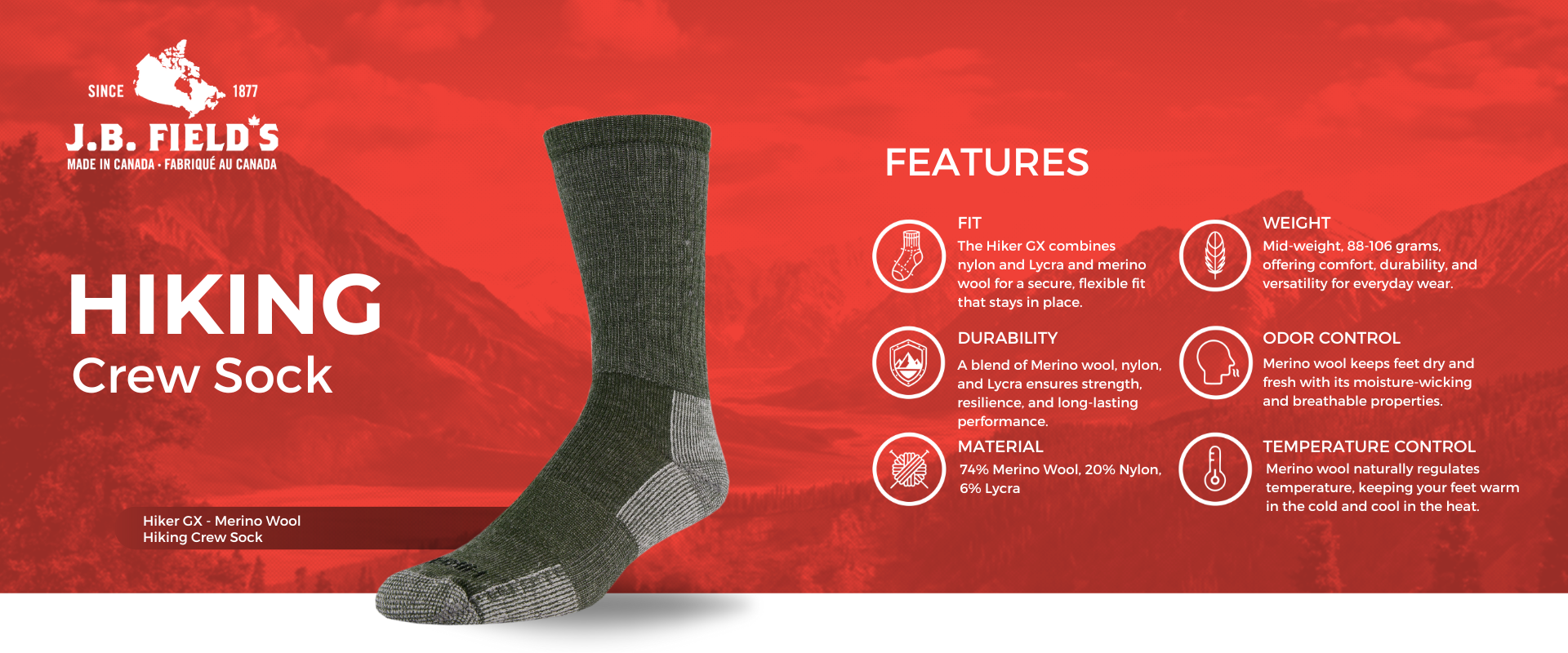 Founded in 1877 in Tavistock Ontario, J.B. Field's was origionally set up to manufacture socks for the logging industry. Today it still remains a family owned business focused on making the world's best socks.