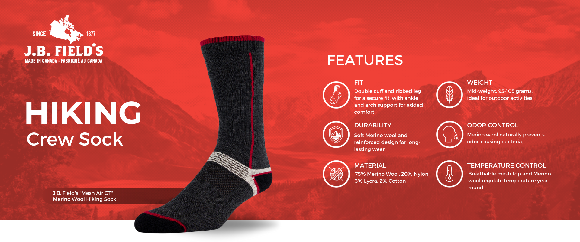 Founded in 1877 in Tavistock Ontario, J.B. Field's was origionally set up to manufacture socks for the logging industry. Today it still remains a family owned business focused on making the world's best socks.