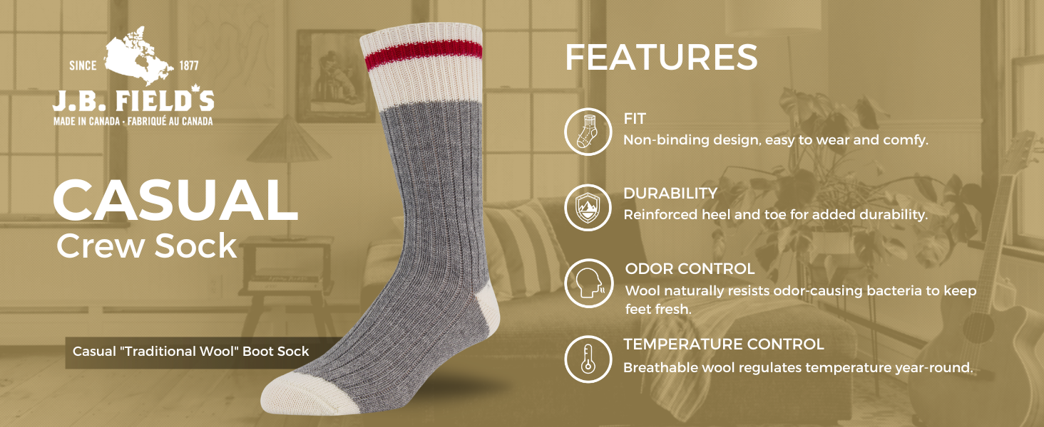 Founded in 1877 in Tavistock Ontario, J.B. Field's was origionally set up to manufacture socks for the logging industry. Today it still remains a family owned business focused on making the world's best socks.