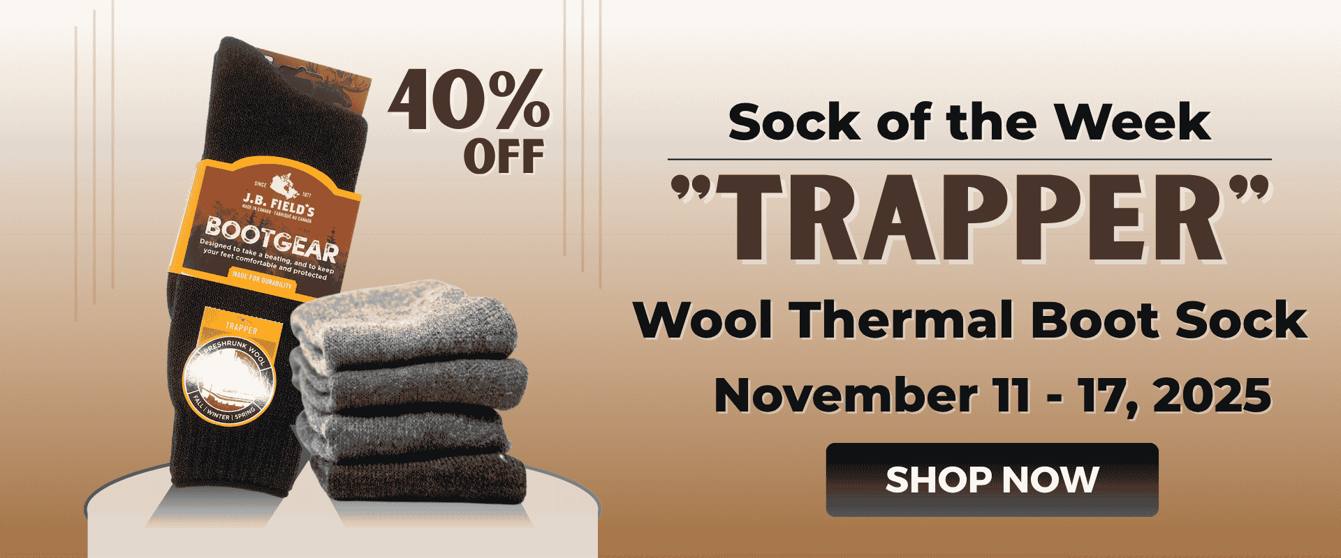 Enjoy a 40% discount on our Sock of the Week, along with savings of 15-50% on select slightly imperfect styles, clearance items, and our curated "Best of" J.B. Fields packs.