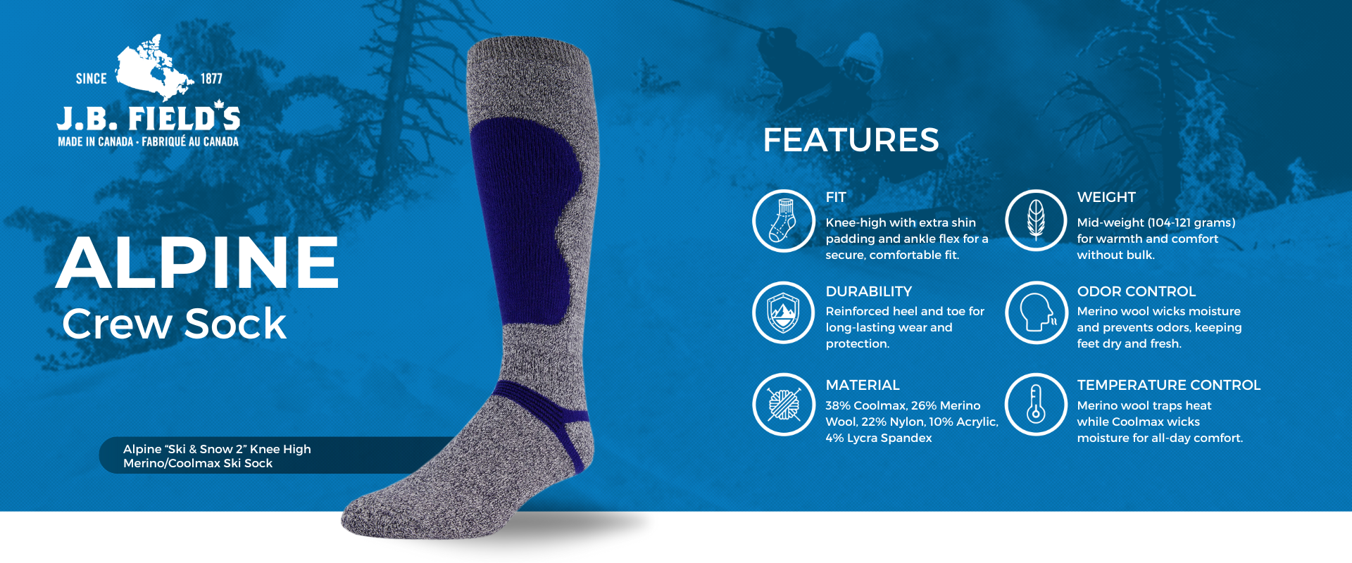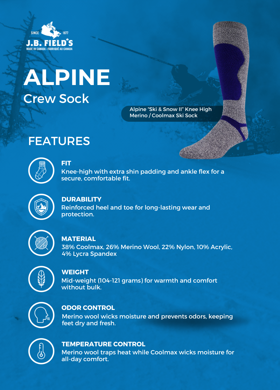 J.B. Field's Alpine "Ski & Snow II" Knee High Merino/Coolmax Ski Sock