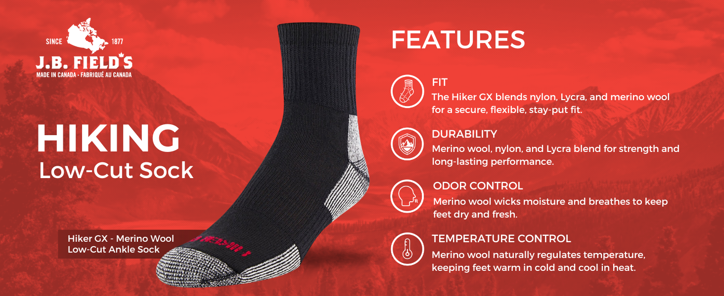 The Hiker GX low-cut ankle sock is an all-season Merino wool sock designed for outdoor activities. It features arch support, half-cushion padding, and impact zones for durability and comfort. Available in both bright and neutral colors, these socks offer exceptional value and performance.