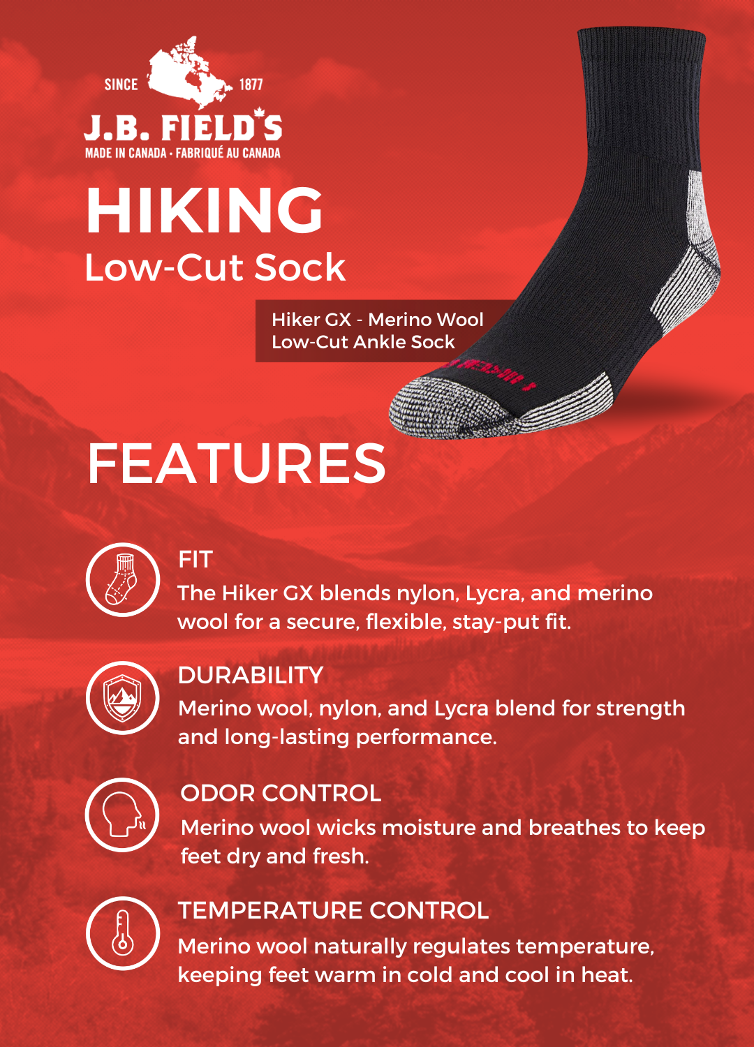 Founded in 1877 in Tavistock Ontario, J.B. Field's was origionally set up to manufacture socks for the logging industry. Today it still remains a family owned business focused on making the world's best socks.
