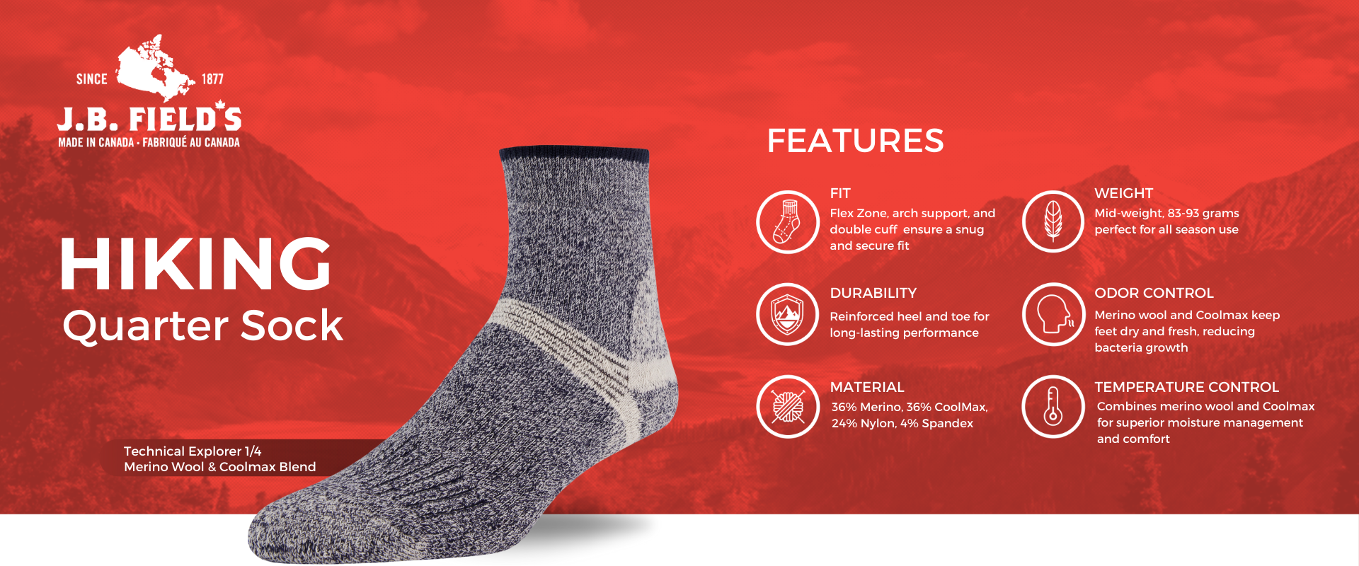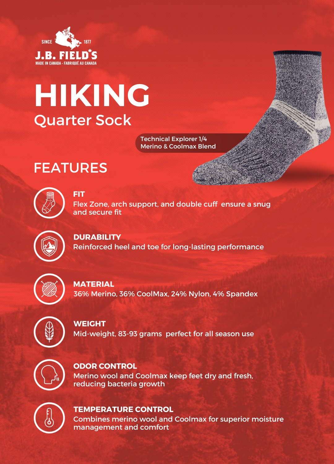 J.B. Field's "Technical Explorer" Merino/Coolmax Low-Cut Hiking Ankle Socks