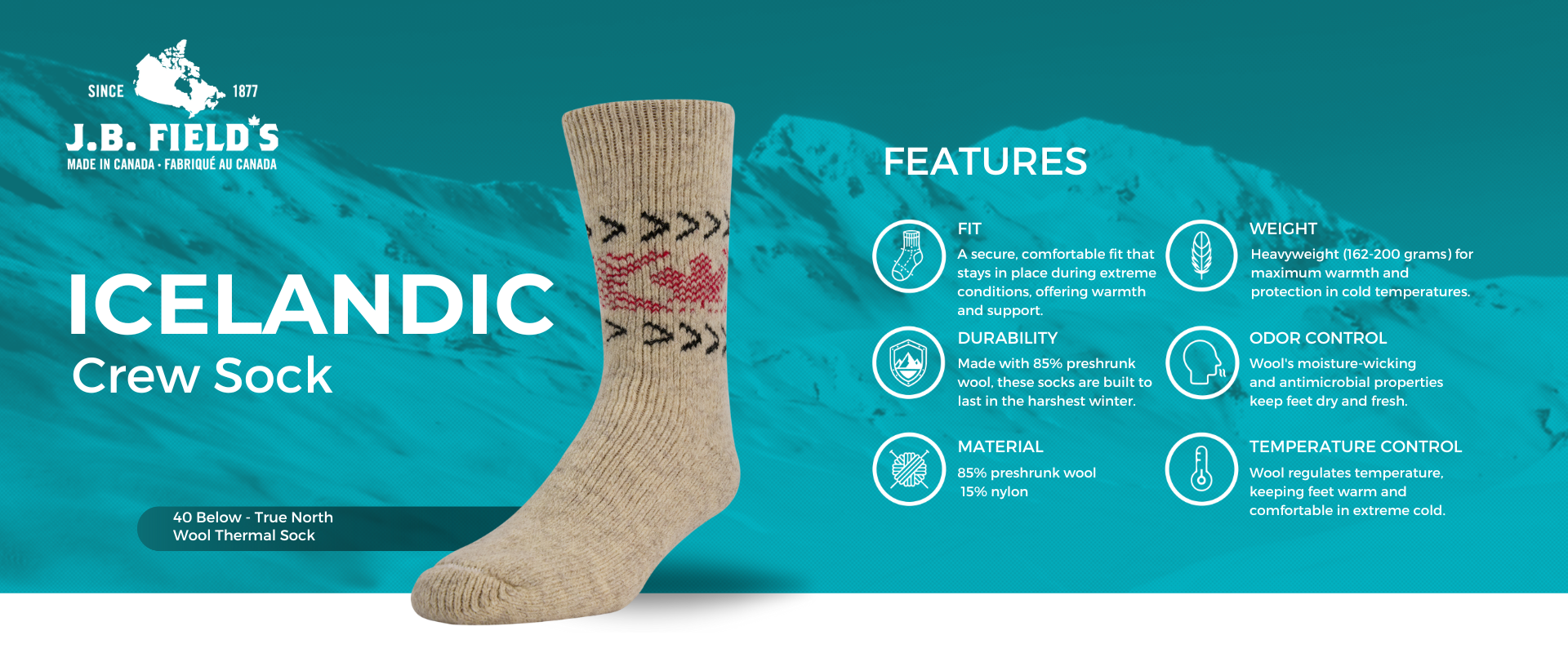 Founded in 1877 in Tavistock Ontario, J.B. Field's was origionally set up to manufacture socks for the logging industry. Today it still remains a family owned business focused on making the world's best socks.