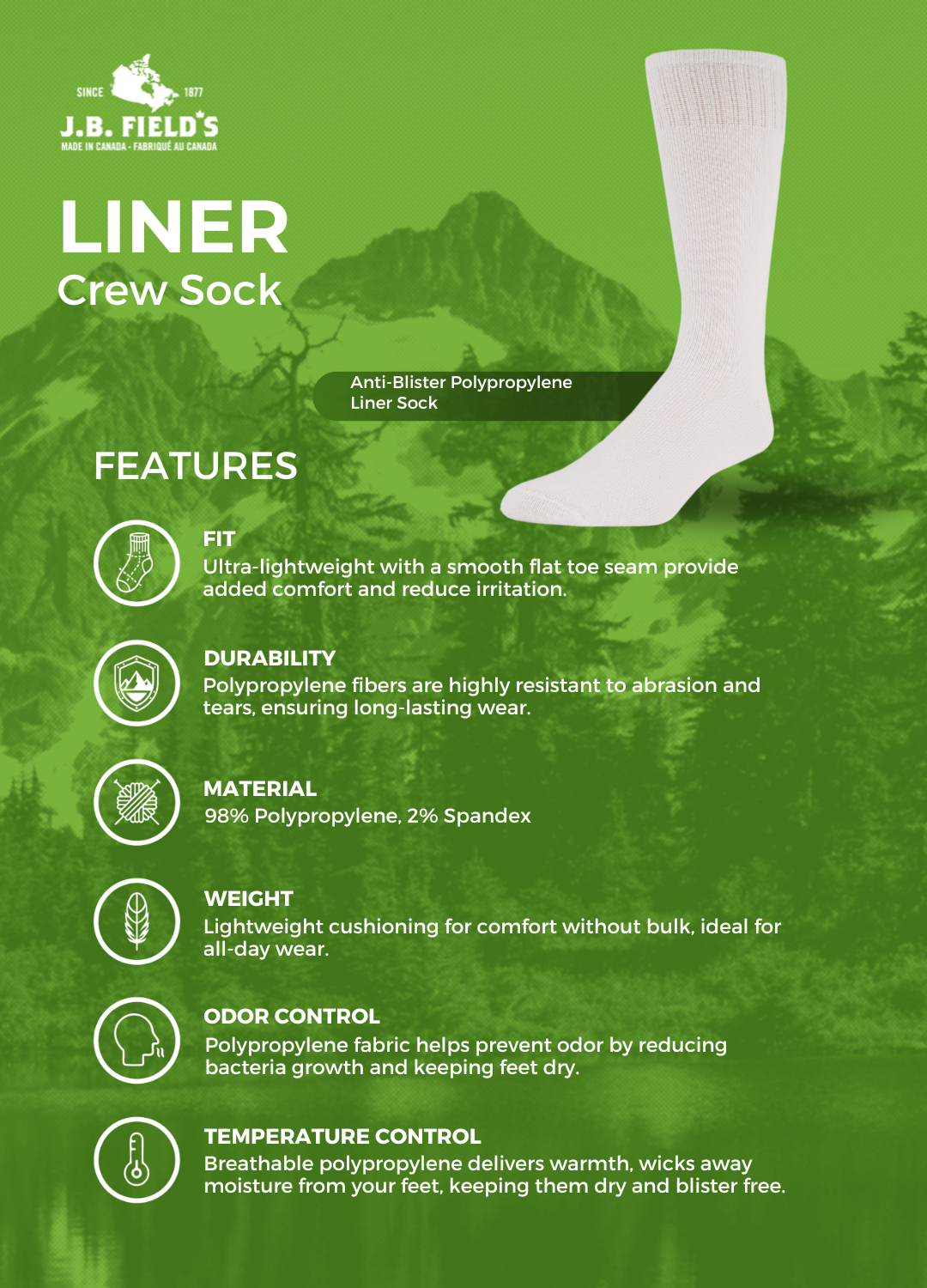 JB Field's Second Skin socks are specifically designed to reduce odour and moisture by keeping your feet dry, helping prevent blisters. Typically they are worn under a thermal sock for added moisture control however in summer they can be worn on their own as a super lightweight sock.