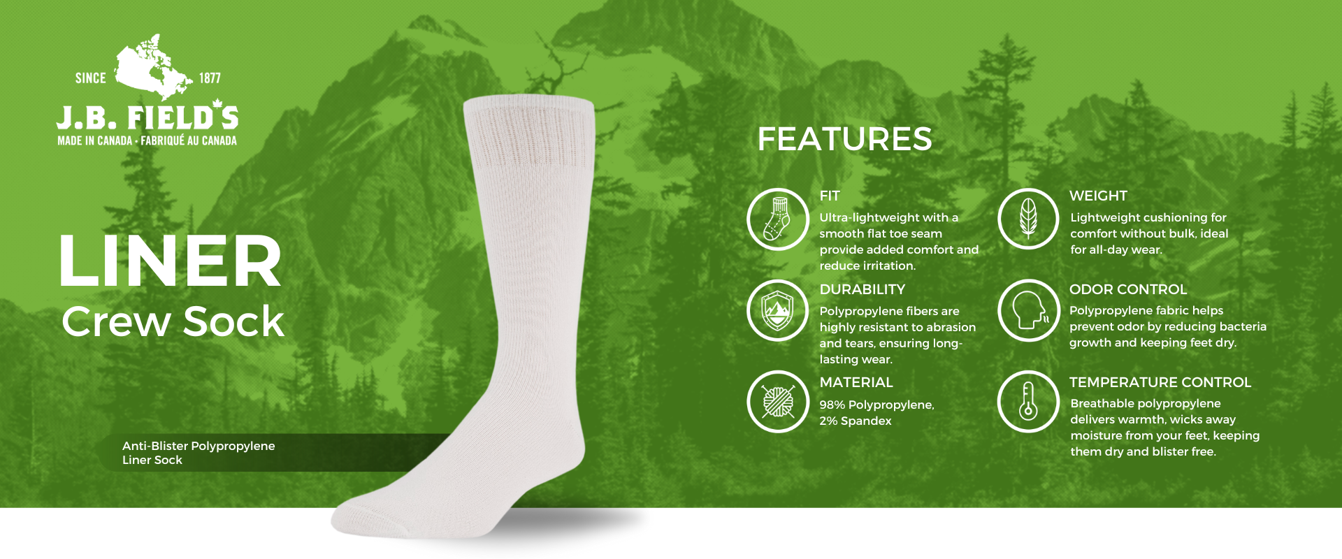 J.B. Field's Anti-Blister Polypropylene Liner Sock